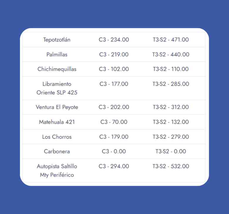 Obtén costos de casetas para camiones de transporte carretero en México.