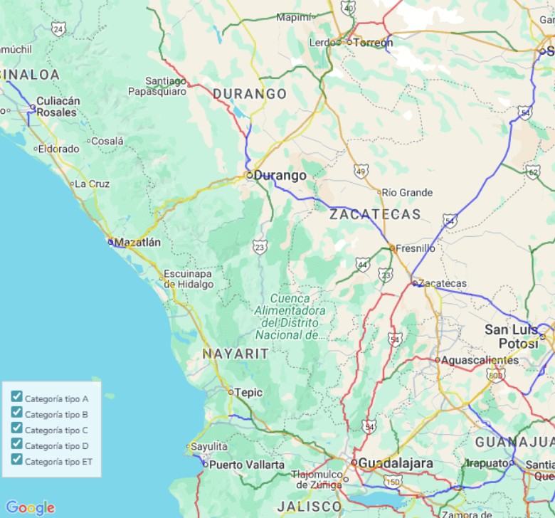 Con Mapp podrás visualizar la clasificación carretera que señala la NOM-012 de la SICT. No solo visualizarás la red completa, sino podrás observar las clasificaciones de forma individual.